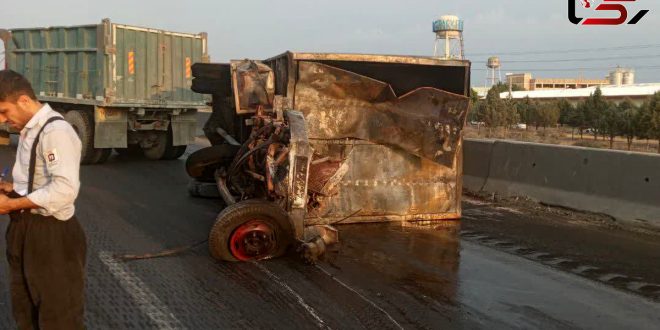 واژگونی کامیون باری منجر به آتش سوزی شد